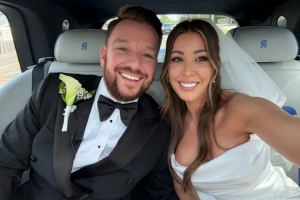 周日,奥哈拉在Instagram上分享了大喜之日的一些精彩瞬间。他发布了一张与新娘的甜蜜自拍,照片中两人坐在婚车后座,笑容满面,看起来比以往任何时候都要幸福。